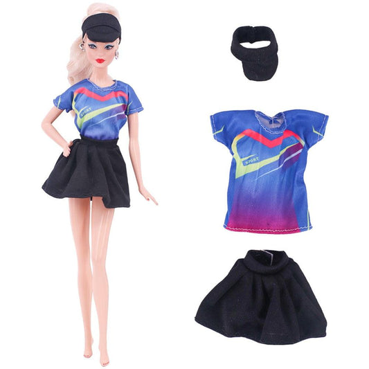 Fünfteiliger Anzug (1 Kleidungsstück + 4 Schmuckaccessoires) Elegantes blaues Abendkleid, geeignet für 30 cm große Barbies-Puppe